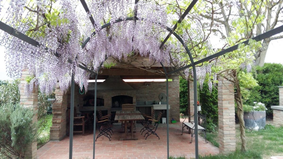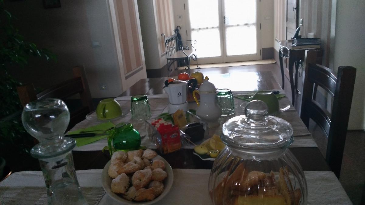 La colazione può essere servita al piano terra nell'incantevole scenario mostrato in alcune foto o, durante la bella stagione, nel fresco riparo del gazebo in muratura nel cortile.